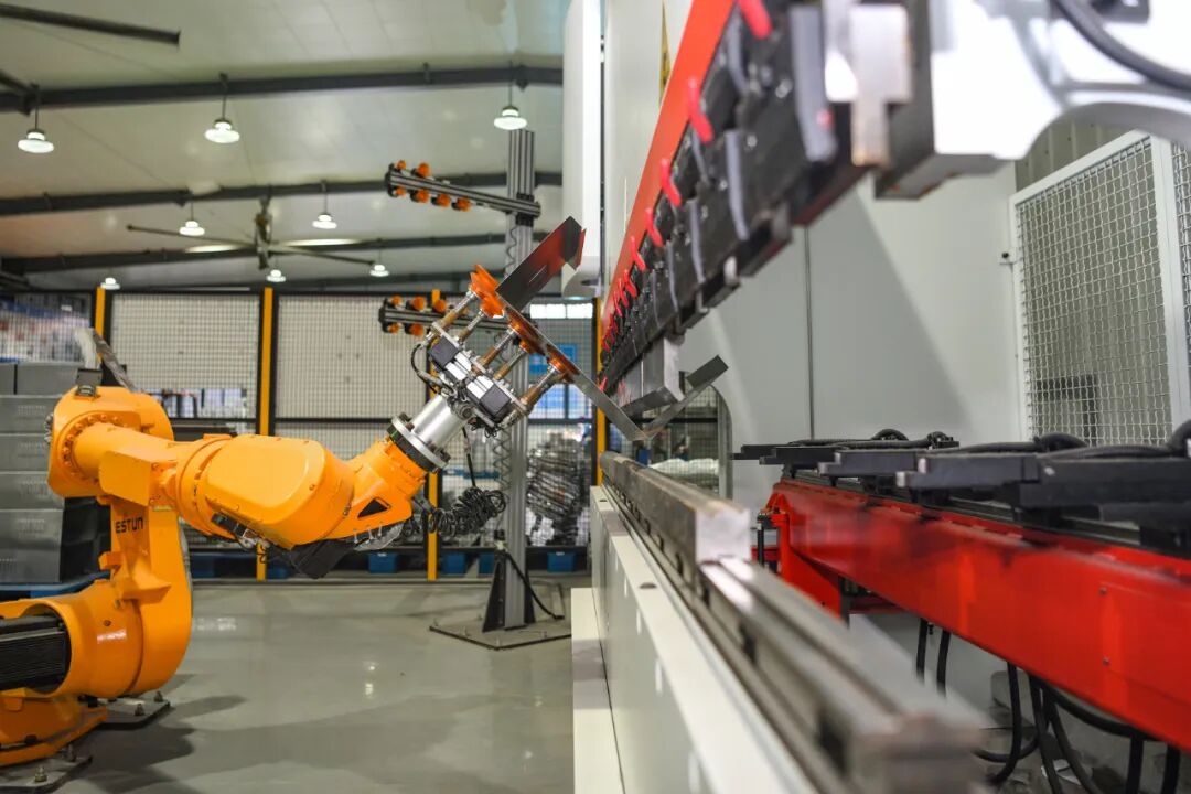 推动生产的自动化。分公司以智慧生产为引领、以自动化生产为抓手、以安全用电为根本,引进激光切割机、自动折弯机、开卷校平横切机等先进加工设备,极大地提高产品生产的安全性、精准性和高效率。其中激光切割机,实现了从图纸到制造环节的标准化流转,生产流转压缩50%;自动折弯机器人工作站和开卷校平横切机组等自动化设备组成的生产流水线,节约人员约1/3,同时整体生产效率提升200%。