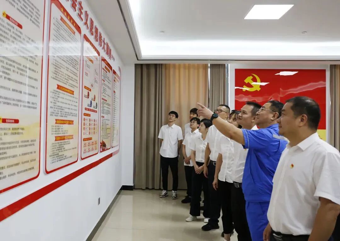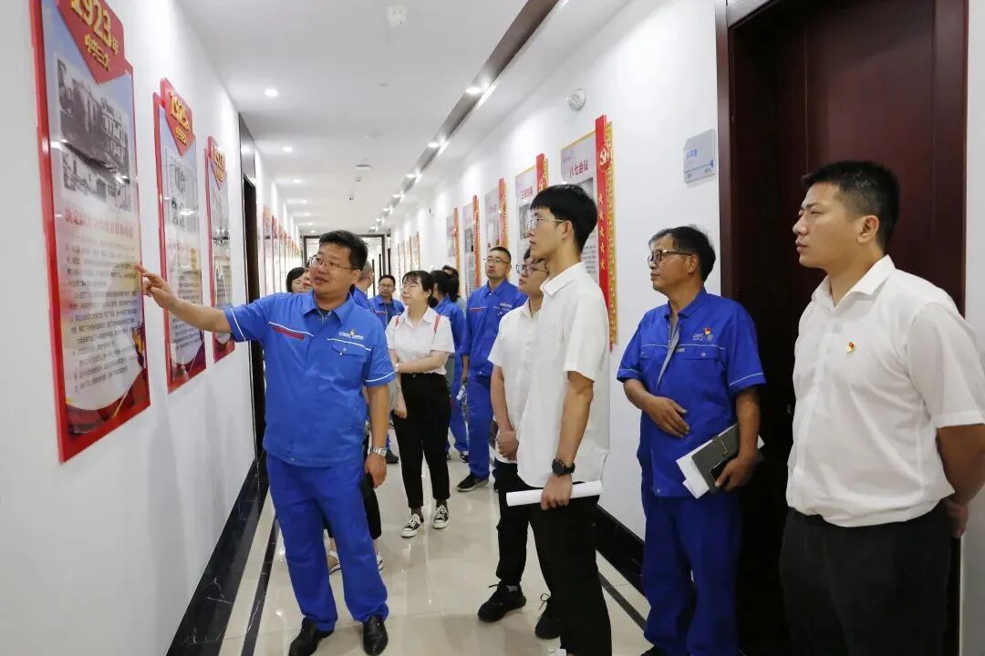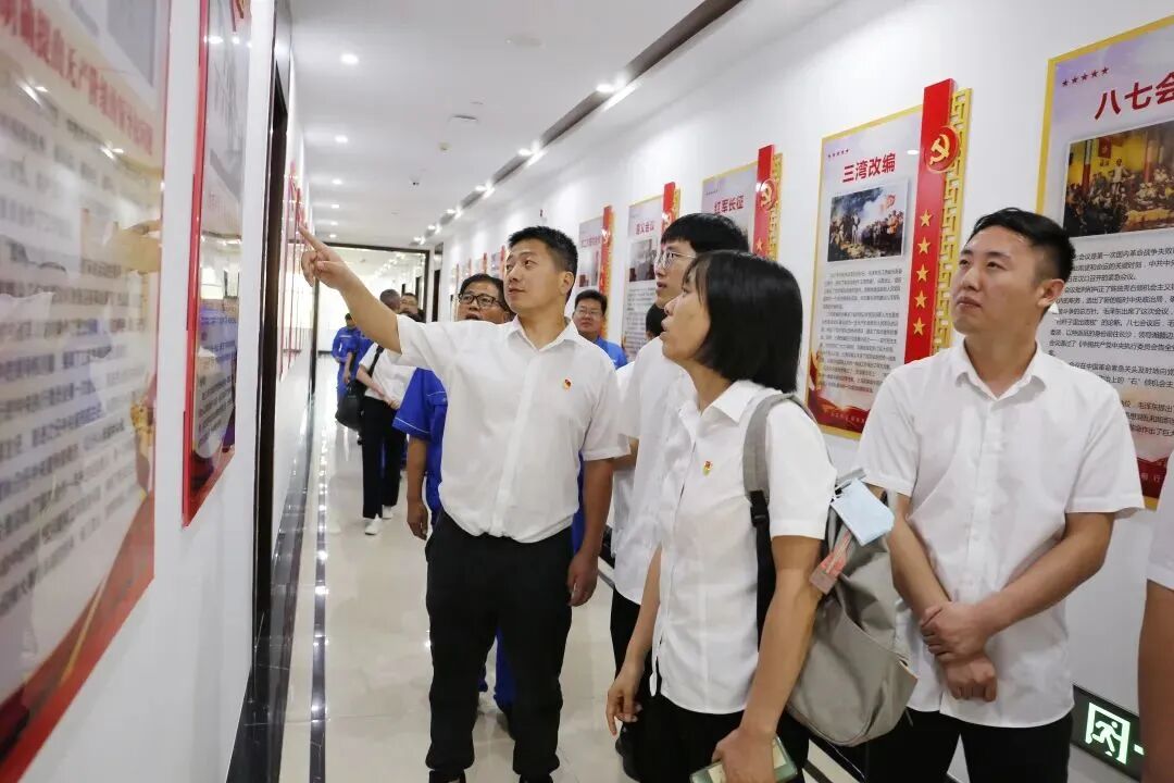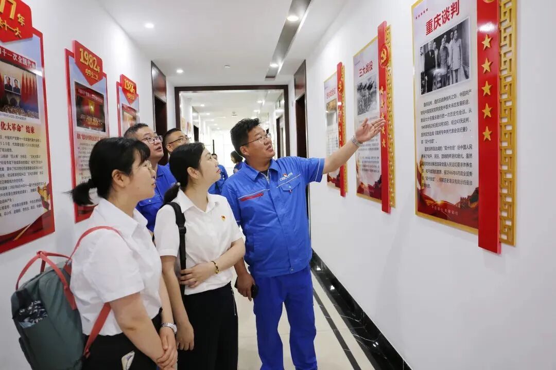 随后,在葛洲坝钟祥水泥党总支书记、副总经理刘二南的带领下,华中集采中心一行参观了党建文化展厅及党史长廊,重点回顾了中共一大至十九大的历次会议。在这场沉浸式“红色文化”教育氛围中,党员、团员们认真学习党的发展历史,深刻领会党的重要会议精神,激发为党的崇高事业奋斗激情。