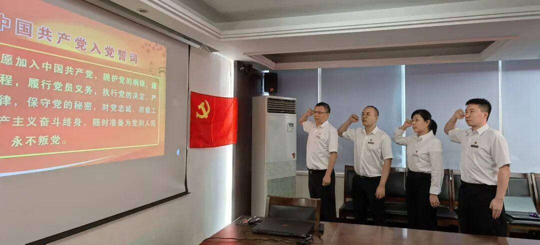 观影活动后,分公司总部党员们开展了重温入党誓词活动,全体党员一起紧握右拳,面对党旗发出庄严宣誓。铮铮誓言铿锵有力,庄严承诺掷地有声。