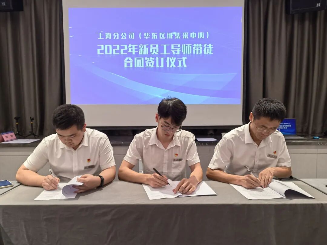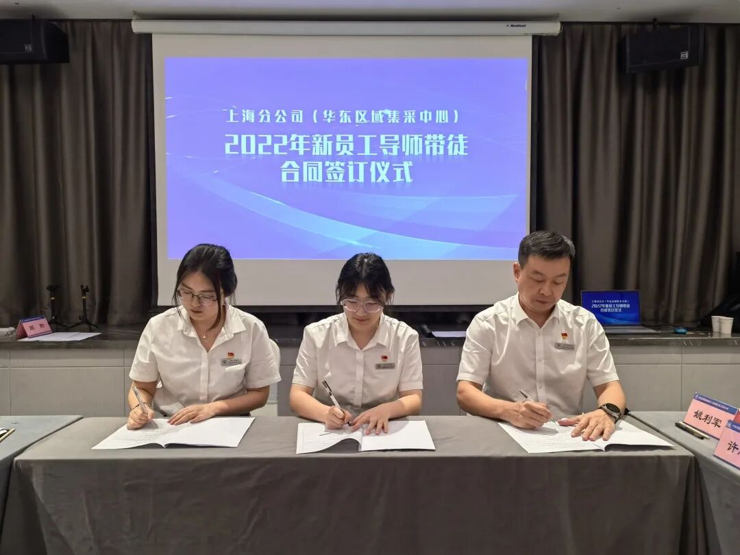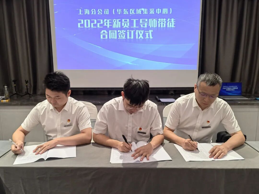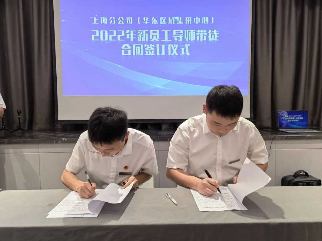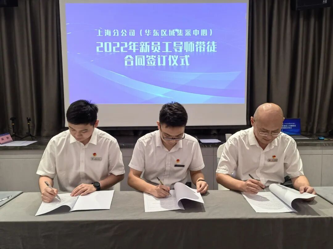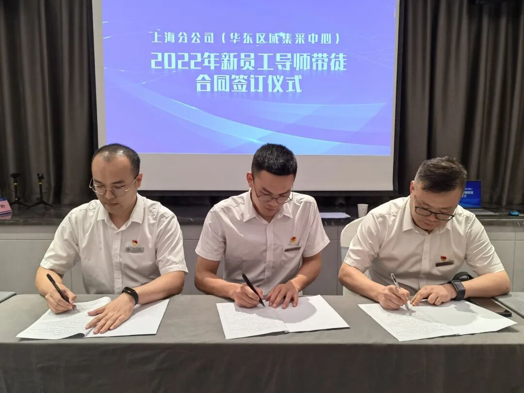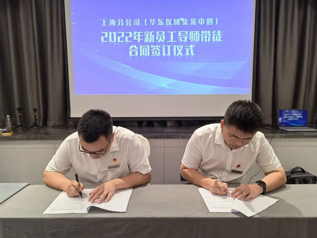 8月27日下午,上海分公司(华东区域集采中心)2022年导师带徒合同签订仪式在江苏南京举行。
