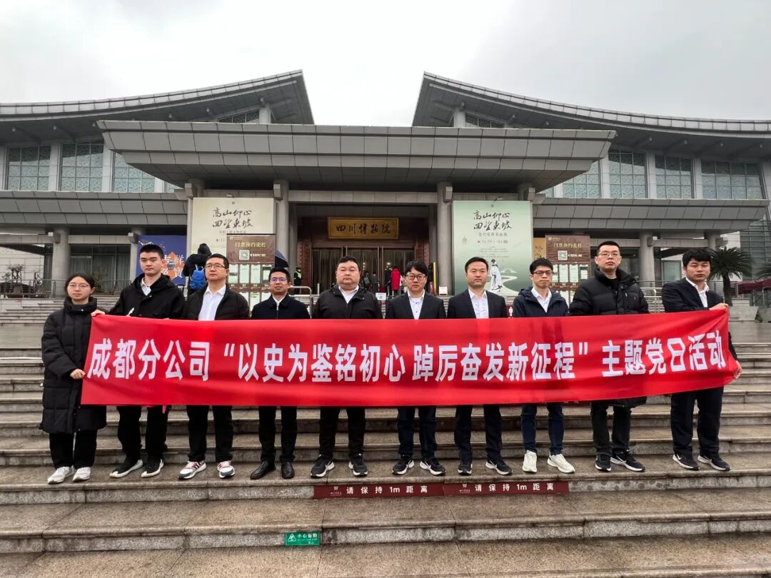 为深入学习贯彻党的“二十大”精神,赓续中华文明,加强员工理念礼仪及企业文化教育,2月21日,成都分公司党支部组织西南区域部分党员干部和职工前往四川省博物院参观,开展“以史为鉴铭初心 踔厉奋发新征程”主题党日活动。
