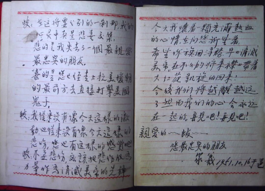 王占岐平日里负责教战士文化课,战斗时,他也认真记录着这群最可爱的人!王占岐在朝期间每天都会记日记,日记本的扉页都是战友们对他的祝福寄语。字里行间体现了他对新中国的热爱,对家人的眷念,家国情怀扑面而来。厚厚的日记本,密密麻麻的文字,这是那段艰难光荣的岁月印记,是值得一生怀念的伟大情怀。