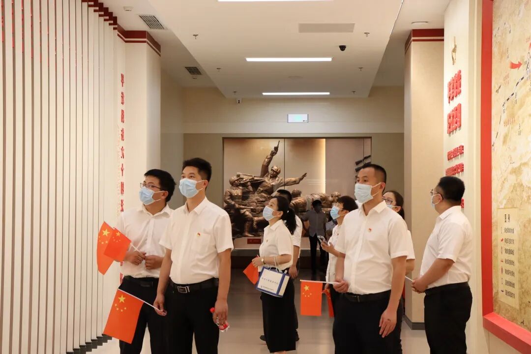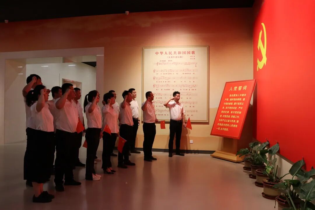 最后全体党员在纪念馆大厅中央,举起右手,面向党旗庄严宣誓,重温了入党誓词,伴随着铿锵有力的宣誓声,此次党史学习活动落下帷幕。