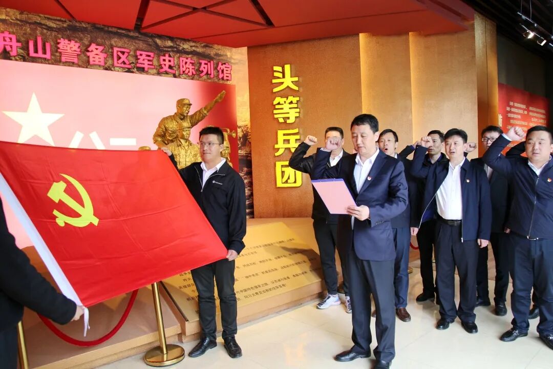 4月17日,物资公司联合局甬舟项目指挥部,在舟山警备区军史陈列馆红色教育基地开展“理想信念情怀 爱党爱国爱企 ”主题党日活动。局甬舟项目指挥部党支部书记卢志刚,党支部副书记、副指挥长江龙余,物资公司党委副书记、纪委书记、工会主席朱立峰及双方党员代表参加活动。